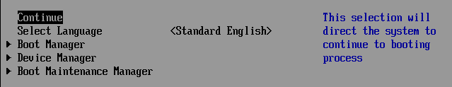 - Press Up Arrow to “Continue” and then Press “Enter”