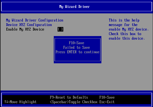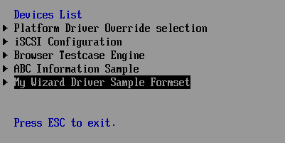 Inside the Device Manager menu press the down to “My Wizard Driver Sample Formset”** Press "Enter"