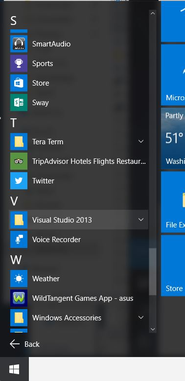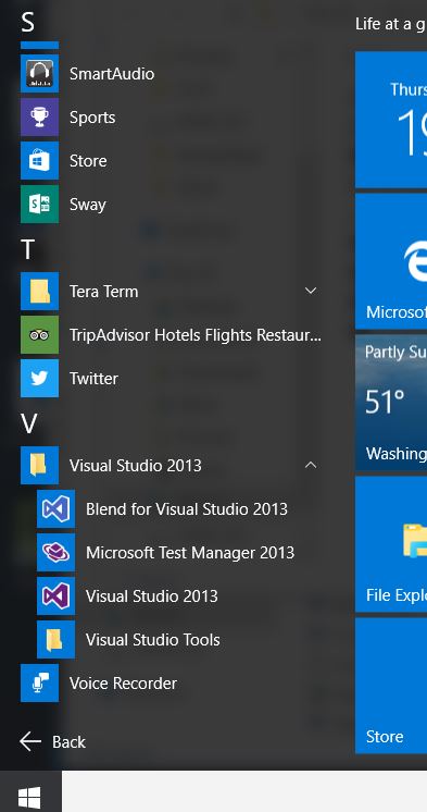 (NOTE: VS 2013 is used in the following examples but VS 2010, VS 2015 and VS 2017 will be similar) - Using the Start menu in Windows 10, Left-click on the “Windows Key” Lower Left