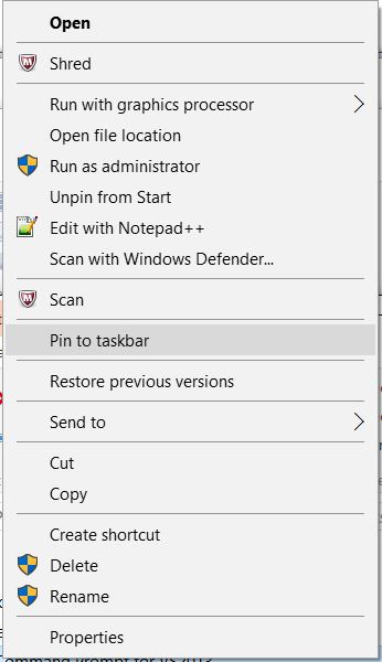 The following steps can be used to Pin the Microsoft Windows 10 – Visual Studio command prompt (201n) to the Task bar at the bottom(default)