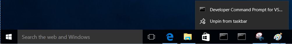 - "Visual Studio Command Prompt" will now be in the task bar.