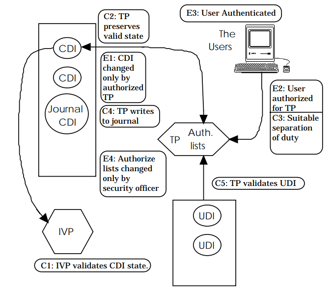 2. C2: (Basic: Validity) All TPs must be certified to be valid. For each TP and each set of CDI that it may manipulate, the security officer must specify a “relation” of the form: (TP, {CDI}).